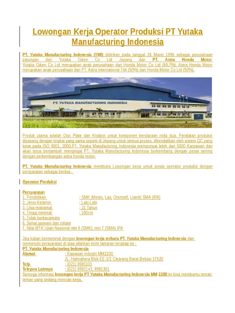 PT Astra Komponen Indonesia - Operator Produksi - Info ... from 2.bp.blogspot.com Maybe you would like to learn more about one of these? Check spelling or type a new query. We did not find results for: Alamat lengkap astra visteon indonesia.