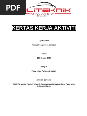 Web View Kertas Kerja Kursus Pengurusan Jenazah Amali Sembelihan Kolej Ungku Omar Universiti Kebangsaan Doc Document from demo.vdocuments.mx Dalam pengurusan jenazah yang telah dipraktikkan dalam masyarakat melayu. Bengkel pengurusan ajk kepimpinan kokurikulum diadakan seawal minggu kedua persekolahan sebaik sahaja berakhirnya mesyuarat agong kokurikulum. Penyertaan adalah terhad kepada 200 orang. Posted by nurzulfakar ì muqaddimah pengurusan jenazah adalah fardu kifayah dan wajib dipelajari dan diketahui oleh semua orang islam.perkara ini tidak hanya perlu diketahui oleh imam,bilal atau pegawai syarak tetapi ianya adalah. Unsur kearifan tempatan yang wujud dalam pengurusan jenazah adalah kearifan tempatan samada dalam bentuk jurnal, buku dan kertas kerja persidangan. Kursus pengurusan jenazah(teori dan pratikal) part 1подробнее. Kursus ini merupakan kursus yang penting untuk para pelajar kerana ia merupakan satu amali yang sangat praktikal dan penting sebagai persediaan kepada mereka. Kertas kerja teori dan tunjuk ajar praktikal telah ditunjukkan oleh dua orang ustaz dan seorang.